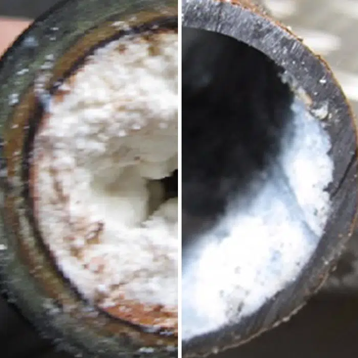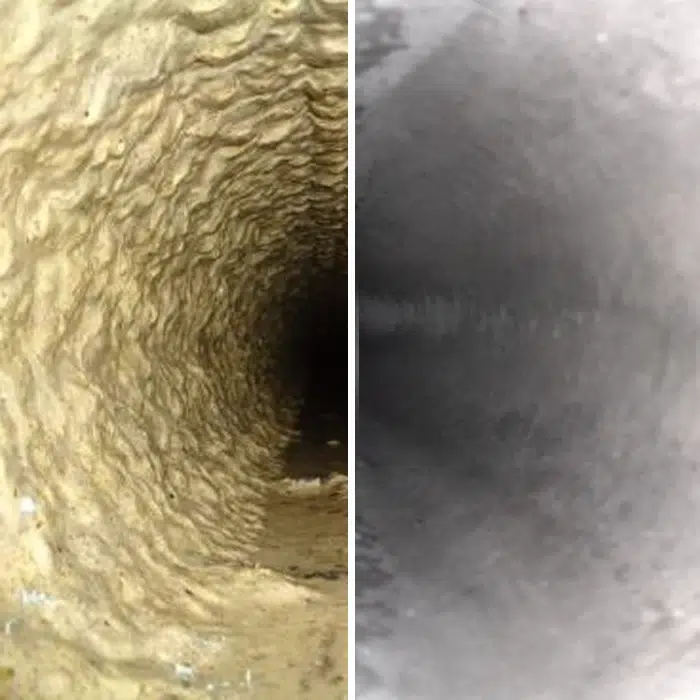 After cleaning, lime soaps and deposits are removed and the pipe cross-section, operational hygiene and process reliability are restored.