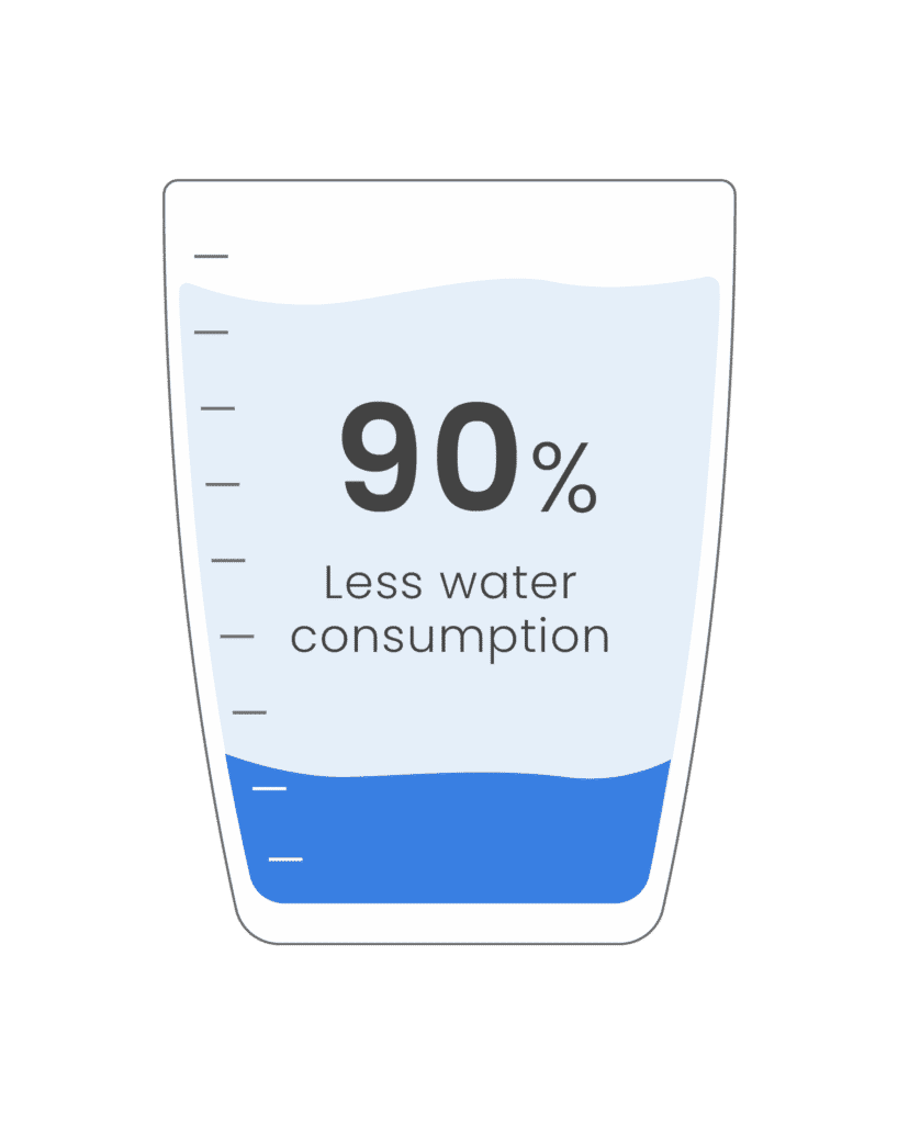Completely chemical-free, with minimal water consumption and usually during ongoing operation (with existing or accumulated water).
